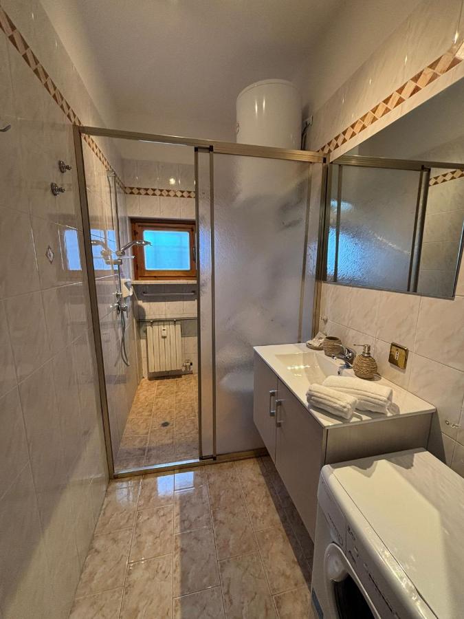 L’appartamento climatizzato è composto da due camere da letto: una matrimoniale ed una twin con ampi armadi, ideali per famiglie o gruppi di amici.